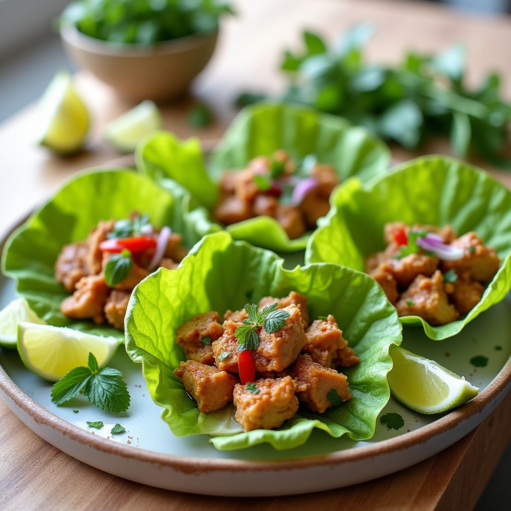 Serve the larb in lettuce cups with cucumber slices on the side.